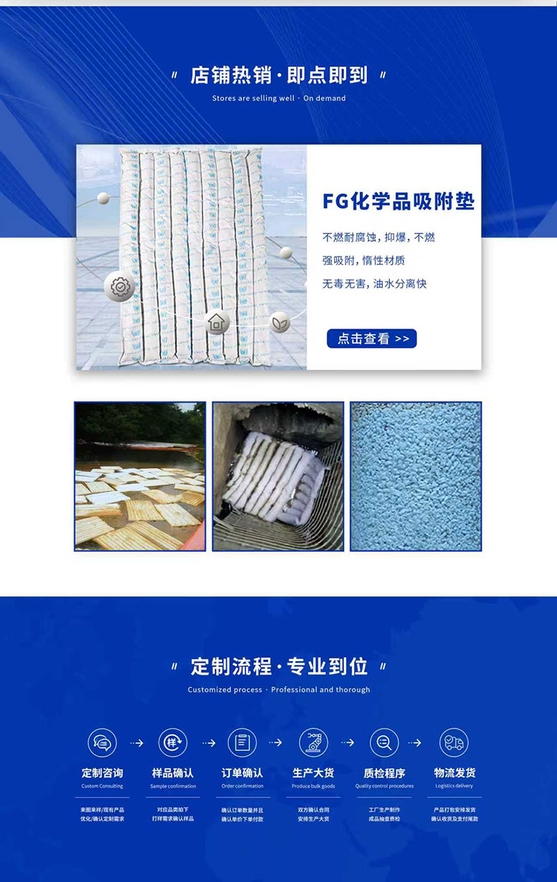 L特有的物理吸附,吸附化學品后遇水不會二次滲出,遇雨不會溶于水中,對芳烴類化學品具有防爆滅火防靜電功能。