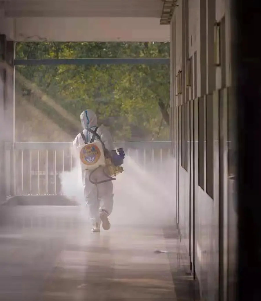 歲月靜好的背后是無數(shù)醫(yī)護人員的負重前行,平安開學(xué)的也是先鋒隊員們負重消毒。他們在寒風(fēng)中滿頭大汗,他們在寒冬中氣喘吁吁,他們在白霧中負重前行,只為實現(xiàn)校園消毒清潔全覆蓋,只為提供校園的健康保障,只為把愛心與奉獻傳遞給每一個人。