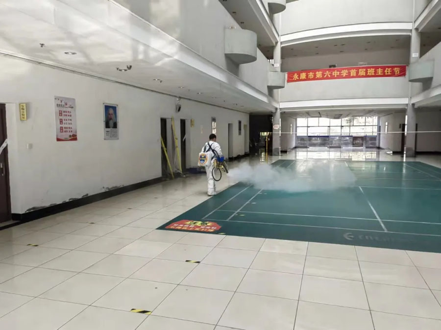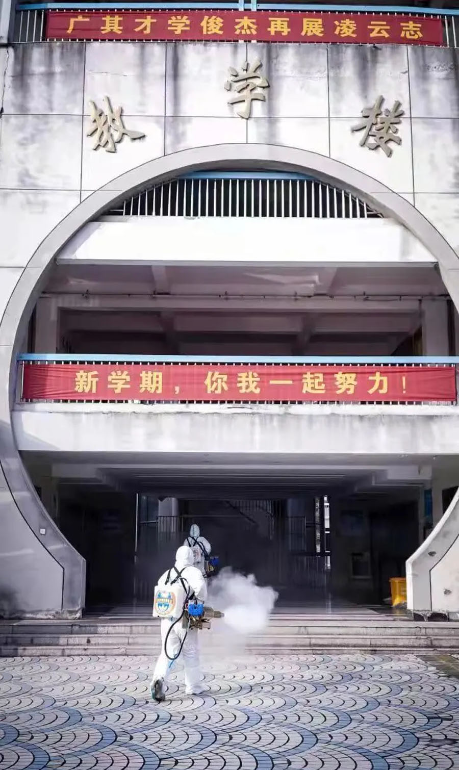 2月14日下午15:00,永康市先鋒民防救援隊來到永康六中,免費對學(xué)校宿舍大樓、教室、教師辦公室、食堂、樓道、洗手間等場所進行全方位的消殺消毒,很大限度地切斷細菌、病毒的傳播途徑,為學(xué)校開學(xué)奠定良好的環(huán)境基礎(chǔ)。