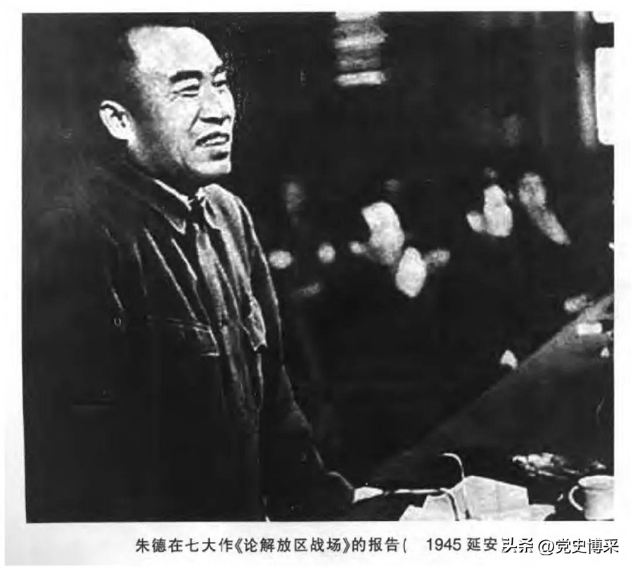 現在保存下來的七大代表合影, 前面的代表是盤腿而坐, 中間有兩排高低有所不同的木板凳, 可以辨認出來的毛澤東、朱德、彭德懷、岡野進、徐特立、周恩來、林伯渠、吳玉章等人, 或坐或站, 他們的前面擠著三四排人。劉少奇、張聞天、陳毅、任弼時、葉劍英站在毛澤東等人的后面一排。很高興的是朱德, 滿臉笑容。相比之下, 其他人的表情就比較莊重而嚴肅了。