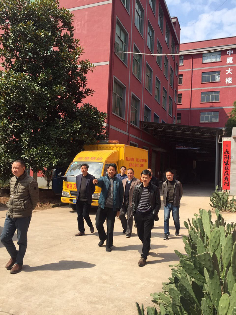 浙江省環(huán)保廳、金華市局、永康市環(huán)保局等十幾位專家領(lǐng)導(dǎo)蒞臨中翼公司參觀指導(dǎo)應(yīng)急救援處置工作