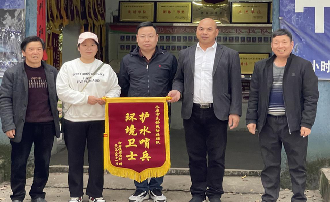 事后,方巖鎮巖后村書記應杰平和村民代表,登門感謝二支隊伍,并送上“護水哨兵、環境衛士”大紅錦旗。