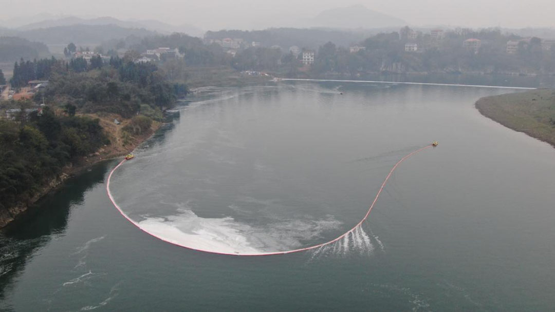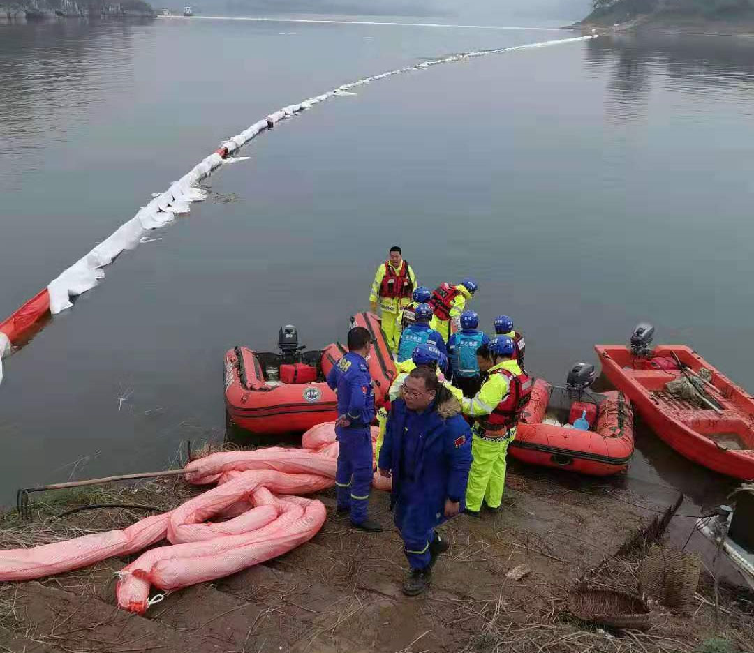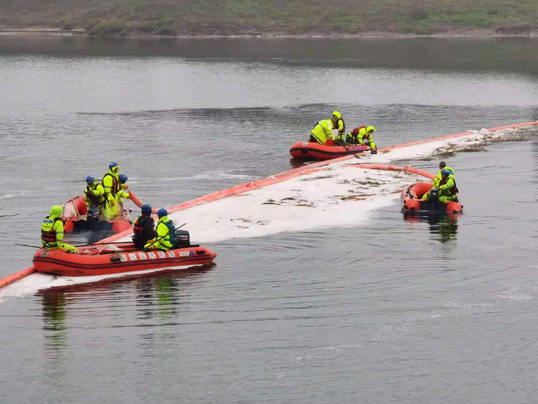 2020年12月9日湖南省冷水江市浪石灘水電站突發約6噸機油泄漏污染水環境災害事故,危及新化城區及下游居民生活飲水的安全。經屬地水文站取樣檢測受污河水石油類濃度超標3.5倍。新化縣委緊急部署屬地應急、環保相關部門、社會救援隊組織調用吸油船、圍油欄、吸油毯、稻草進行應對處置,在河面橫向布放二道圍油欄,將溢油控制在楓林街道新田村碼頭上游約二十畝水域內。