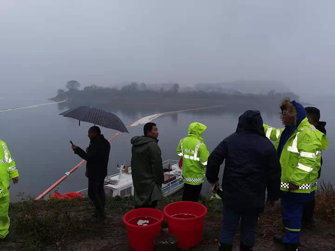 12月11日新化縣委書記朱前明等相關領導在新田村碼頭指揮部召集應急救援商會,鑒于當時應對技術措施尚不能完全阻斷徹底清除水上油污物,根據專家建議,會商決定由新化應急局緊急向浙江中翼公司采購科技前沿安全環保類FG吸油顆粒劑、吸附拖欄等應急物資,唯有通過物理吸附模式來達到油水分離后才能將其徹底清除,確保下游沿江城市、水域環境、水生漁類不受其害。