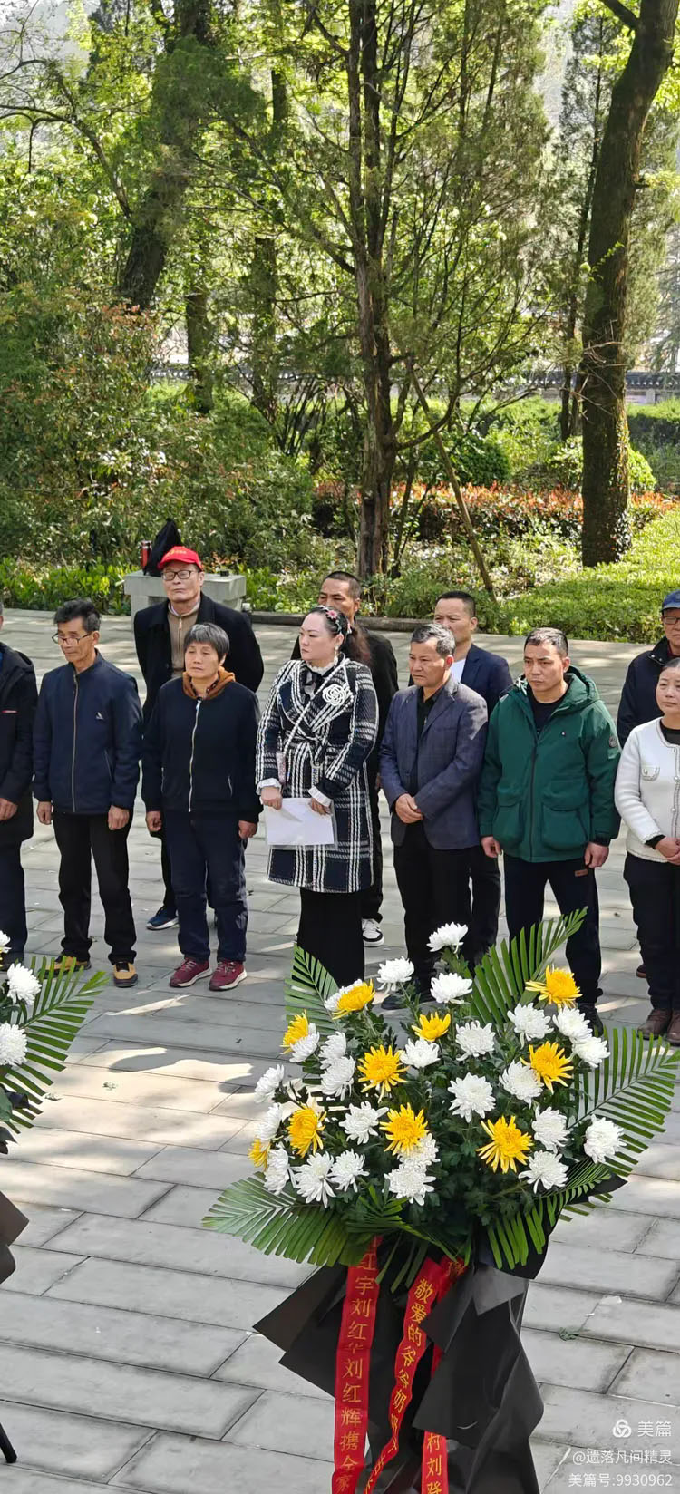 陵園門前矗立著高大的石碑,“劉英烈士陵園”幾個大字蒼勁有力,仿佛訴說著英雄的不朽事跡。我們一行人中,有來自瑞金的老區親屬,也有永康早期革命烈士的后裔。大家齊聚一堂,向劉英、張貴卿等革命英烈致以最深切的哀悼。在國歌聲中,全體肅立默哀,隨后整理花籃挽聯并敬獻鮮花。這一刻,山河靜默,英魂安息。