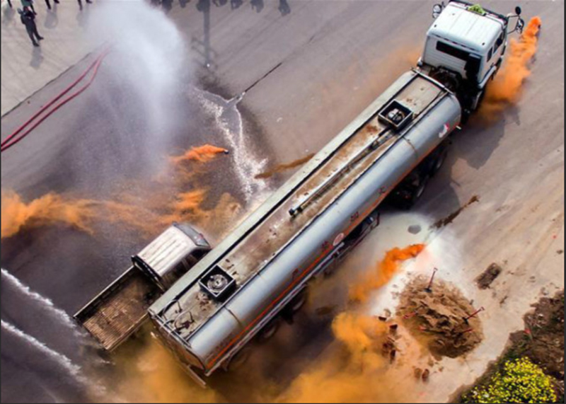 5.強(qiáng)化應(yīng)急處置:運(yùn)輸途中一旦發(fā)生泄漏等情況,個(gè)人力量無法挽救時(shí),要迅速開往空曠地帶,遠(yuǎn)離人群、水源。特別是在高速公路上,要迅速將車輛移至緊急??繋?,規(guī)范設(shè)置警示區(qū)域,并立即報(bào)警。報(bào)警時(shí)應(yīng)詳細(xì)講明危險(xiǎn)化學(xué)品的名稱、性狀、數(shù)量和泄漏等情況,便于救援人員第一時(shí)間有效處置。