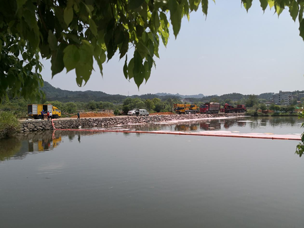 接到訊息后,胡指揮長、董大隊長即刻啟動應急預案,先鋒救援隊五分鐘內迅速聚集起20余名人員。應急救援車滿載油污物理吸附材料,快速出發奔赴現場進行處置。農村農業局綜合執法漁政徐隊長已經在現場指導維持秩序,并對魚塘水質污染情況進行采樣監測。