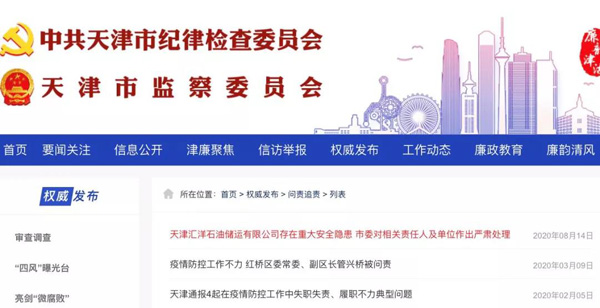 8日16時(shí)許,國(guó)務(wù)院安委辦檢查組當(dāng)場(chǎng)將天津匯洋石油儲(chǔ)運(yùn)有限公司管理存在重大隱患一案交當(dāng)?shù)卣块T(mén)處理。17時(shí),天津市港航管理局已將執(zhí)法文書(shū)下達(dá)至該企業(yè),責(zé)令該企業(yè)停產(chǎn)停業(yè),立刻整改。18時(shí),天津市政府相關(guān)部門(mén)舉一反三,部署了整改行動(dòng)。20時(shí),天津市港航管理局、應(yīng)急管理局聯(lián)合召集南疆石化小區(qū)各石油儲(chǔ)運(yùn)企業(yè)主要負(fù)責(zé)人進(jìn)行約談。