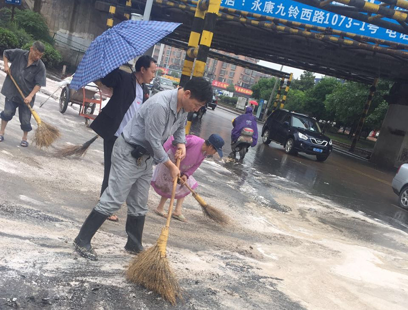 2016年6月22日,永康市三馬九鈴轉盤發生火災造成數噸油污泄漏路面,中翼公司發動黨員積極分子,主動積極參與油污去除搶險義務活動,成功將路面油污清理干凈。確保油污不進入雨水管道、確保永康江不受油污污染。